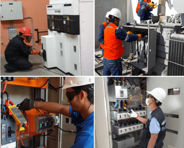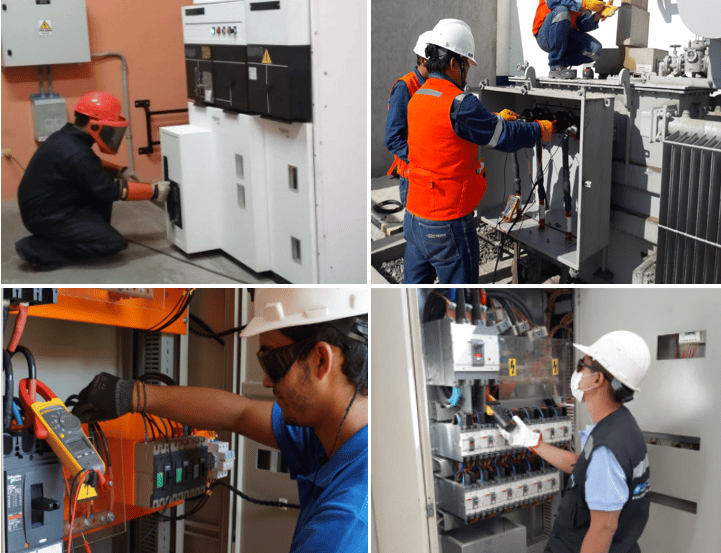 Mantenimiento de transformadores de distribución, celdas de media tensión, tableros eléctricos y banco de condensadores.