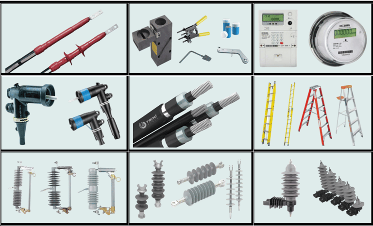 Proveemos terminaciones termocontraibles, conectores tipo codo, cables de aluminio, moldes y soldaduras exotérmicas, seccionadores poliméricos cut out, aisladores poliméricos tipo pin y suspensión, escalera de fibra de vidrio, etc. accesorios con calidad garantizada.